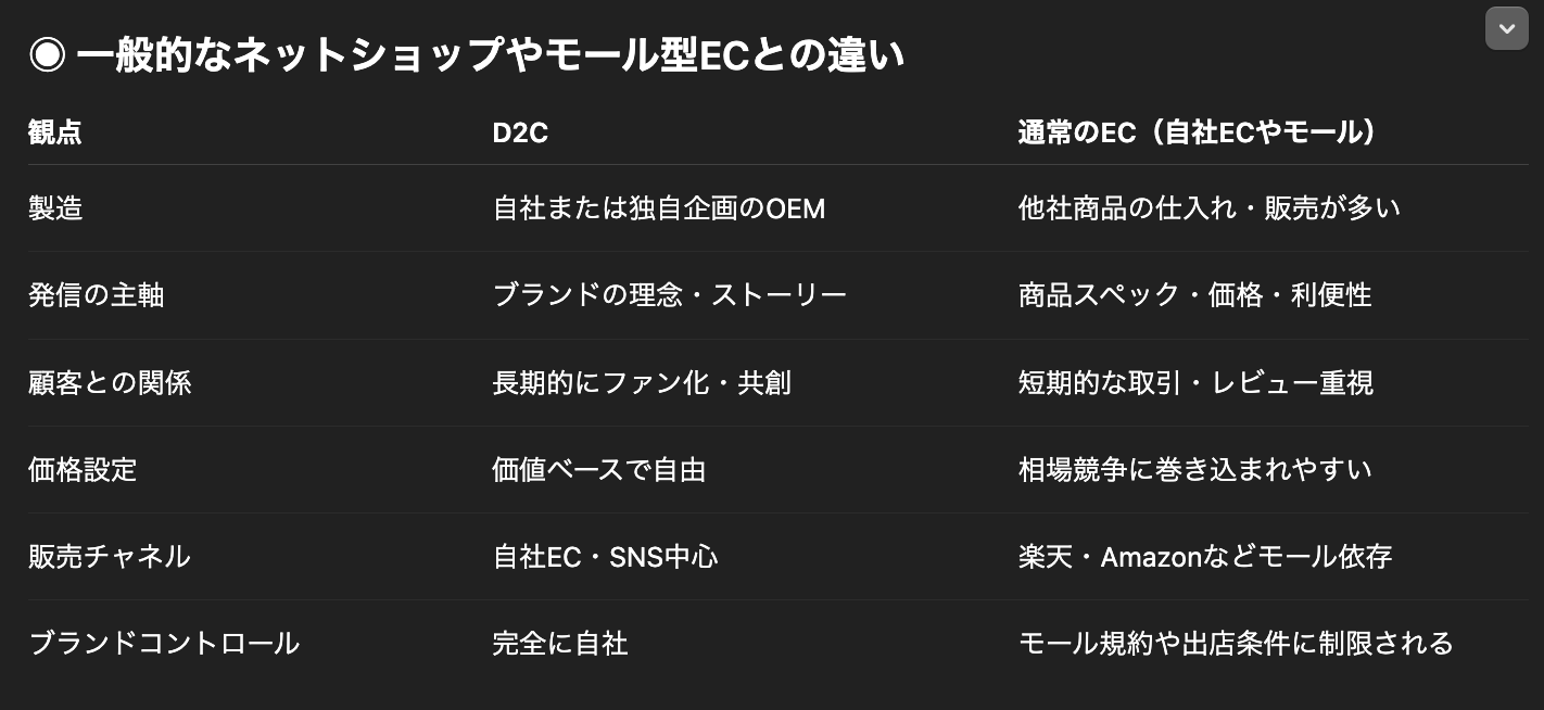 「いやいやD2Cって、いうってもただのネットショップ、WEB通販でしょ?』「D2Cって言葉だけで、結局楽○やアマ○ンのECと同じじゃん?」