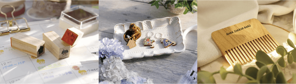 私たちの商品は、木製品を扱っているのでとてもシンプルです。名入れでも焼印、シルク印刷、レーザー彫刻、フルカラー印刷とありますが、それぞれでイメージ、印象が変わります。それだけでなくしっかり写真をとると世界観の創出も可能。