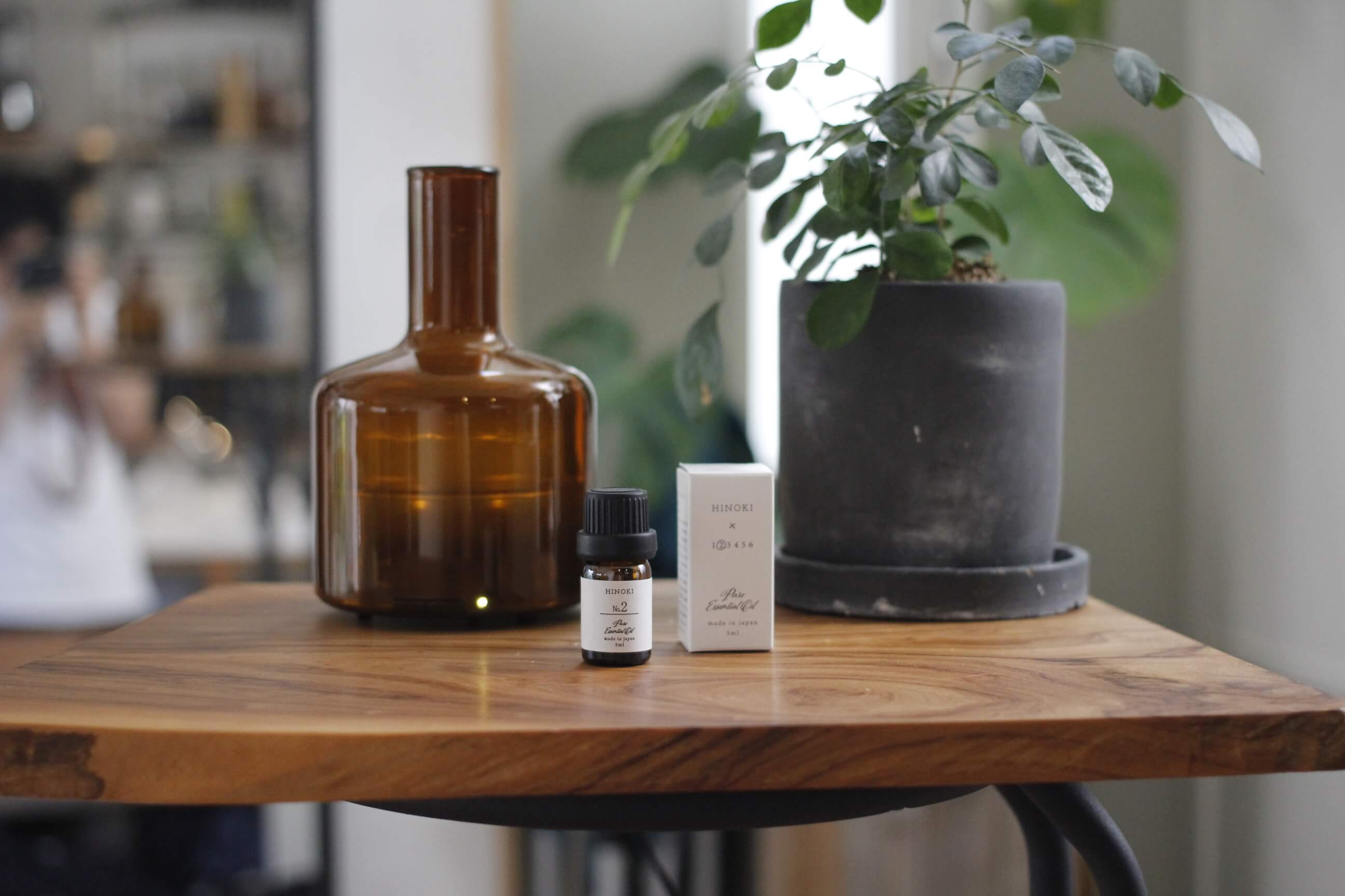 ヒノキの精油っていい香りだけど、アロマ市場ではシングルオイルが人気で、まずはラベンダーやカモミール、ゼラニウムといった花物、次にオレンジやレモンといった果実物、そして、ミントやユーカリといった葉物。
