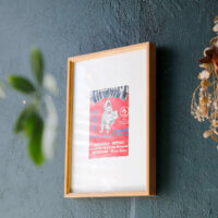サクラの木の質感に白い額装マットの組み合わせに、余白を多めにとったデザインでポストカードなどを入れておしゃれに決まります。