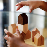 家の形がシンプルでかわいいと評判でつみきです。9つの木の樹種が異なっていてインテリアとして飾ってもこどもの玩具としても、木の表情が豊かでおすすめです。