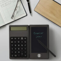 手書きでメモすることができる電子メモパッドがついている電卓です。サクラの木がデジタルガジェットさりげないデザイン性を加えてくれます。