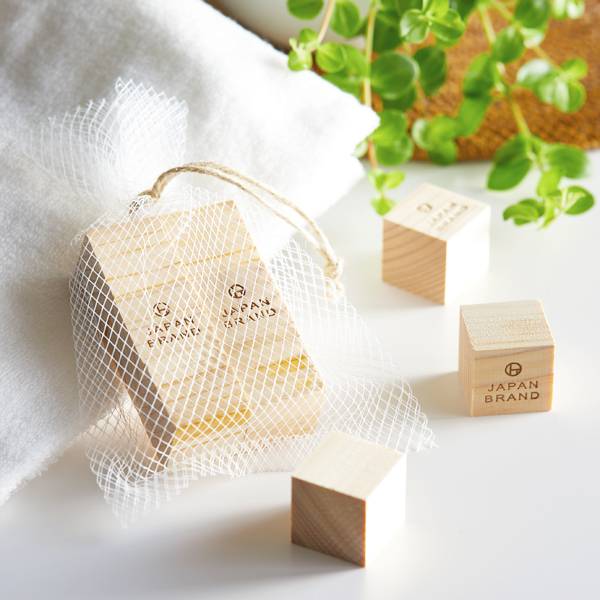 抗菌消臭効果に優れたヒノキ材を使用したアロマブロック。浴槽に入れて「檜風呂」を楽しんだり、タンスや下駄箱の消臭・防虫グッズとしてもご利用いただけます。ブロックの側面に名入れが可能。女性向けのイベントや展示会におすすめのノベルティです。
