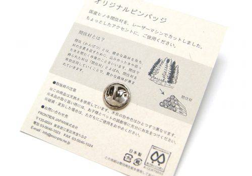 国産の杉の間伐材で作った小さなピンバッジです。ナチュラルな木肌で柔らかい印象。男女ともにご使用いただけます。