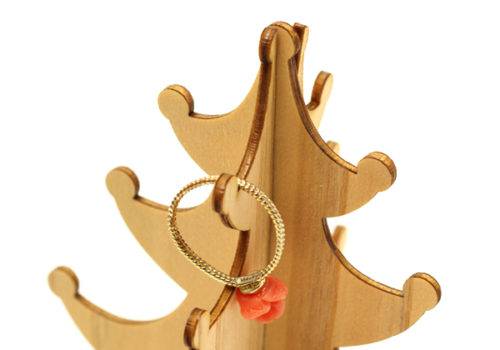 キラキラしたリングがかけてあるリングツリーは、見た目は可愛らしいインテリアそのもの。二組の木材を組み合わせるだけなので、使わないときはコンパクトに片付けることも可能。