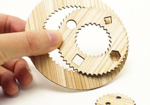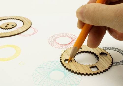 幾何学模様を描くことができる、国産スギ間伐材から作られた不思議なデザイン定規です。