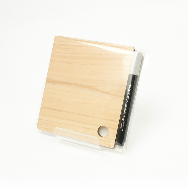日本のヒノキの間伐材から生まれたメッセージボードです。表面は特殊塗装されており、ホワイトボードマーカーやクレヨンで何度も書いたり消したりすることができます。
