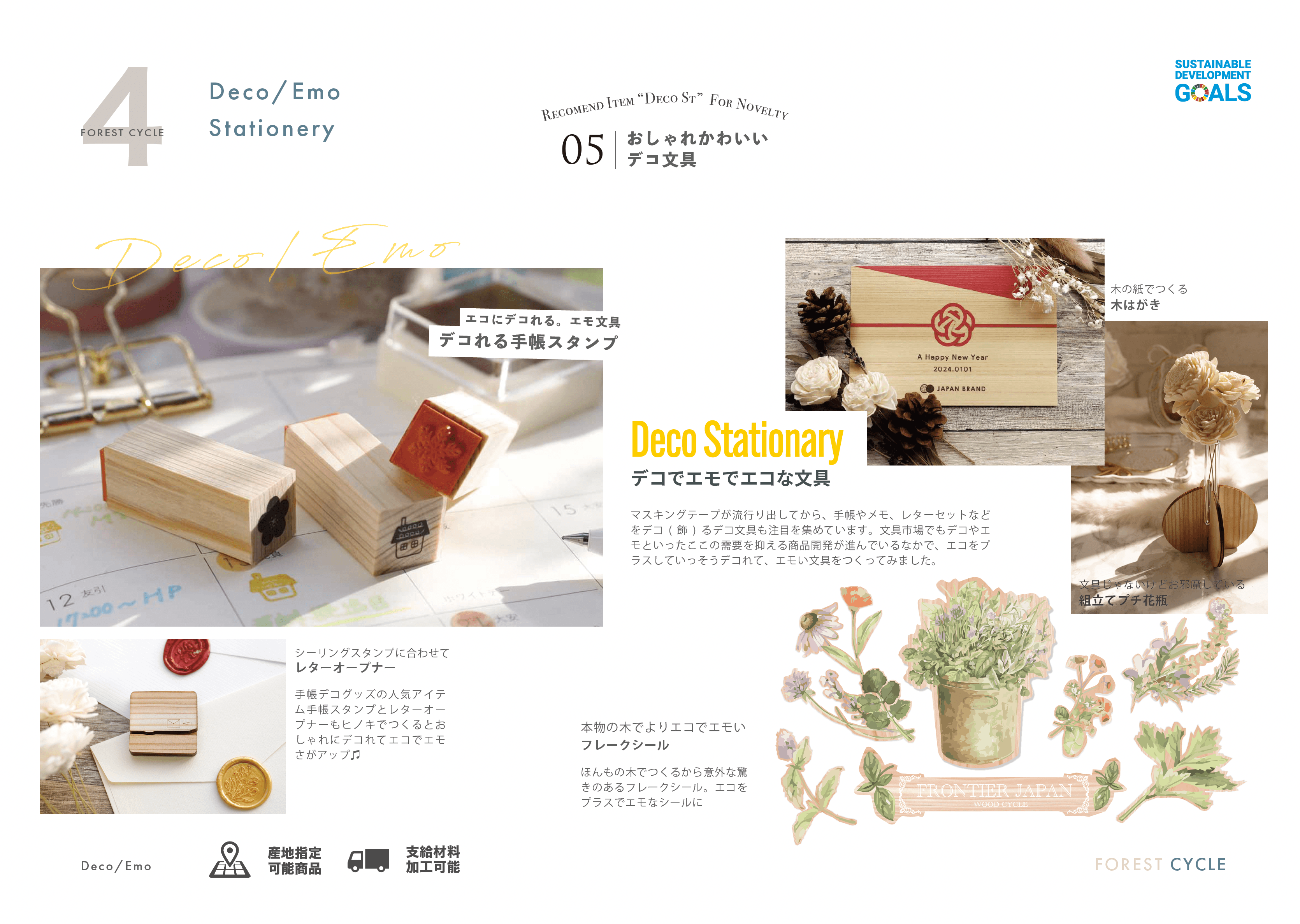 日本で問題になっている、森が適切に管理されなくなったこと。この解決に、デコ文具のスタンプをはじめブランドラインとして、木をつかっていただくと、気候変動の原因の一つ、温室効果ガスを削減することにもつながっていきます。