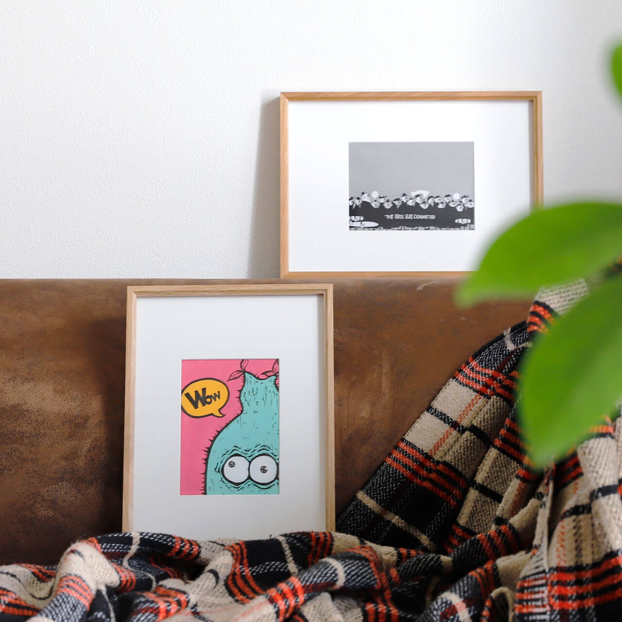 - 2壁にかけずにインテリアとして、複数組み合わせることで空間のアクセントになります。POPなデザインにもシックな写真などにも