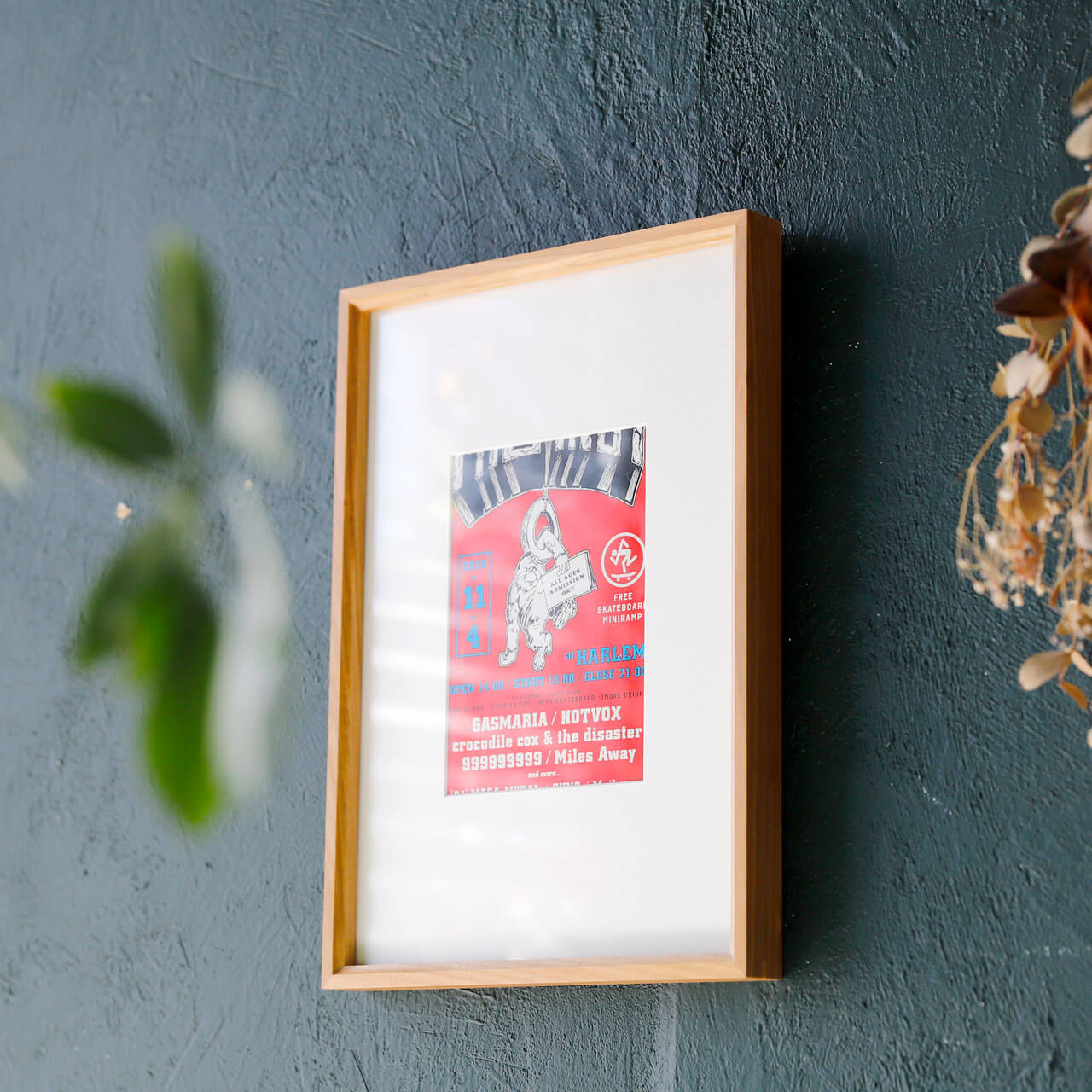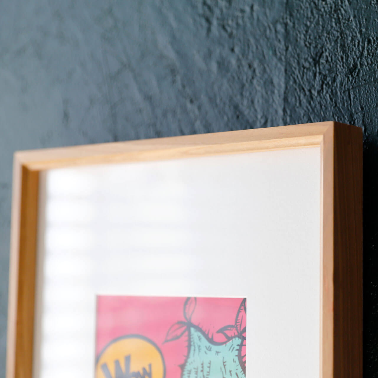 - 1サクラの木の質感に白い額装マットの組み合わせに、余白を多めにとったデザインでポストカードなどを入れておしゃれに決まります。