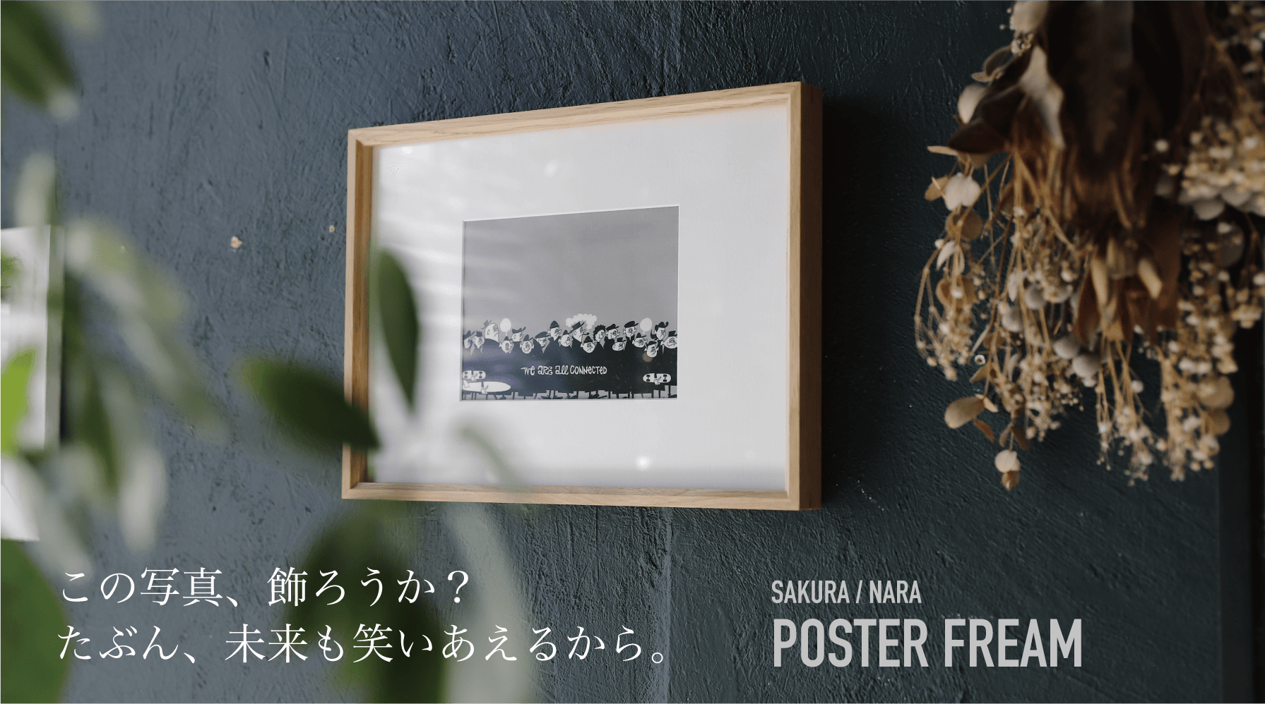 変わらないこと、変わること。写真のなかの風景や被写体は、いつまでも変わることはありませんが、それを見つめる私たちは変わっていきます。こどもや両親、そして自分。写真だけでなく一緒に描いたお絵描きや似顔絵、うれしいこと。たのしいこと。いろんな思い出といっしょに成長していく、そんなコンセプトでポスターフレームをつくりました。